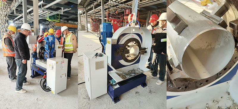 相较于传统加工工艺,该设备最大优势是工序一体化成型。传统作业需经过切割、转运、二次装夹、坡口打磨多道工序,多次定位易产生累积误差,且耗时耗力。而一体机可实现一次装夹、环绕加工,同步完成管道切断与坡口精加工,大幅简化作业流程,缩短近一半加工周期,有效提升施工效率。同时设备加工精度稳定,坡口平整光滑,尺寸误差可控,从源头保障管道焊接贴合度。